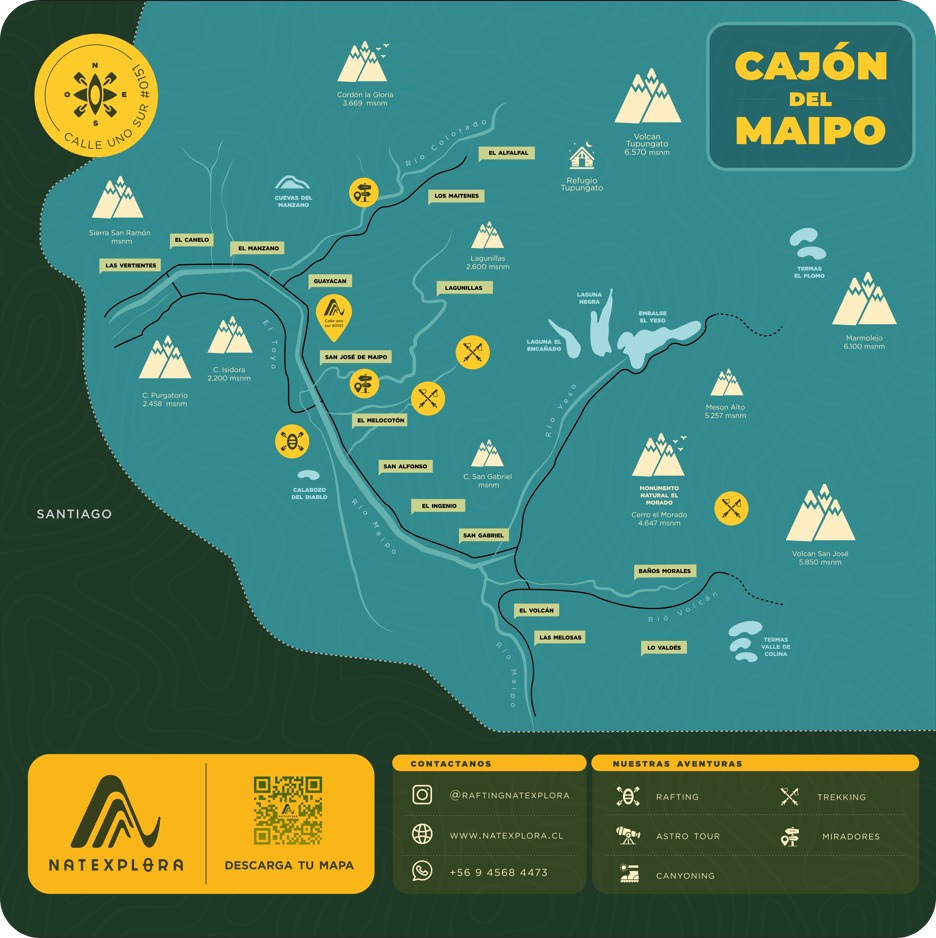 ¿Vienes al Cajón del Maipo? No te pierdas nuestros mapas descargables con rutas, miradores, senderos y tips para sacarle el jugo a tu aventura.